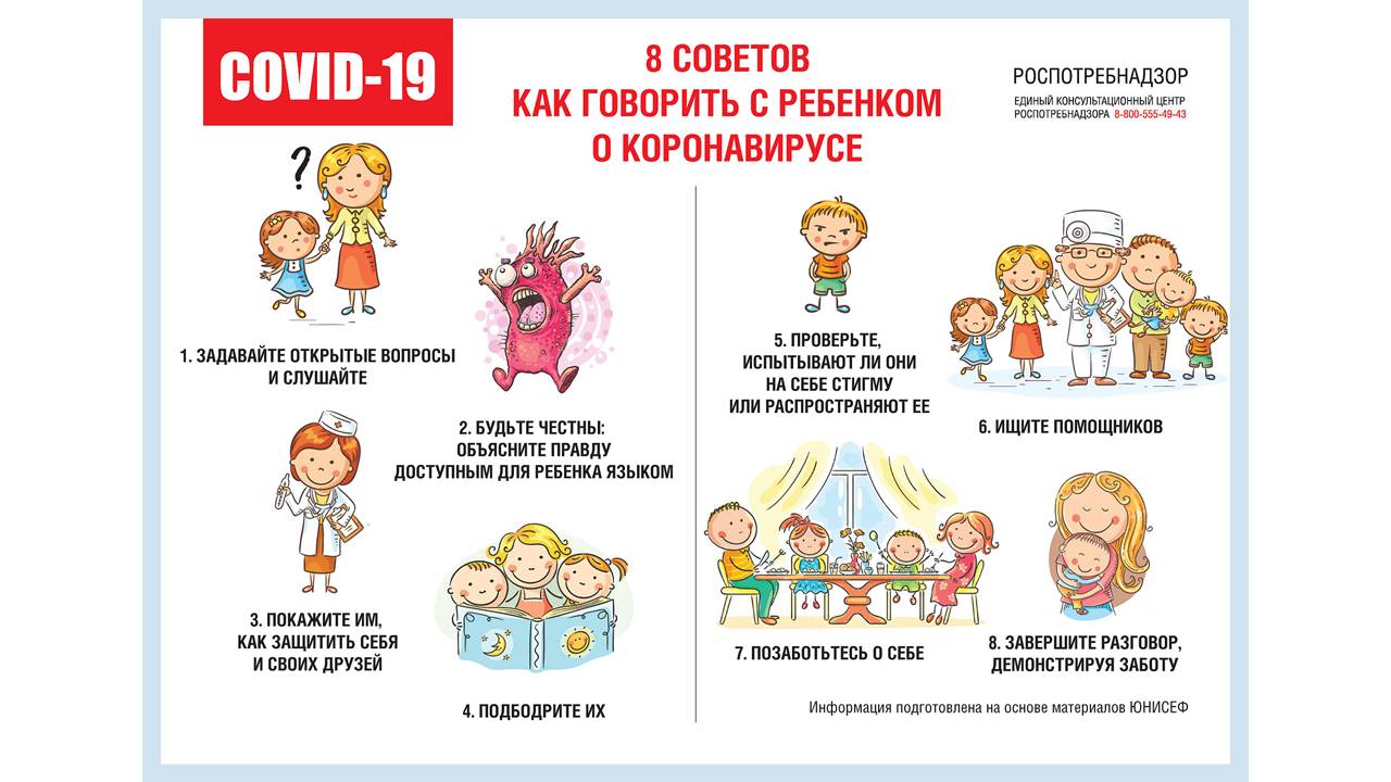 Сейчас даже взрослому легко почувствовать себя потрясенным от всего того, что вы слышали о коронавирусной болезни 2019 года (COVID-19). Если ваши дети тоже испытывают беспокойство, это тоже объяснимо. Детям бывает трудно понять, что они видят в Интернете или по телевизору - или слышат от других людей, - поэтому они могут быть особенно уязвимы к ощущениям тревоги, стресса и расстройства. Но открытый, поддерживающий разговор с вашими детьми может помочь им понять, справиться и даже принести пользу другим.